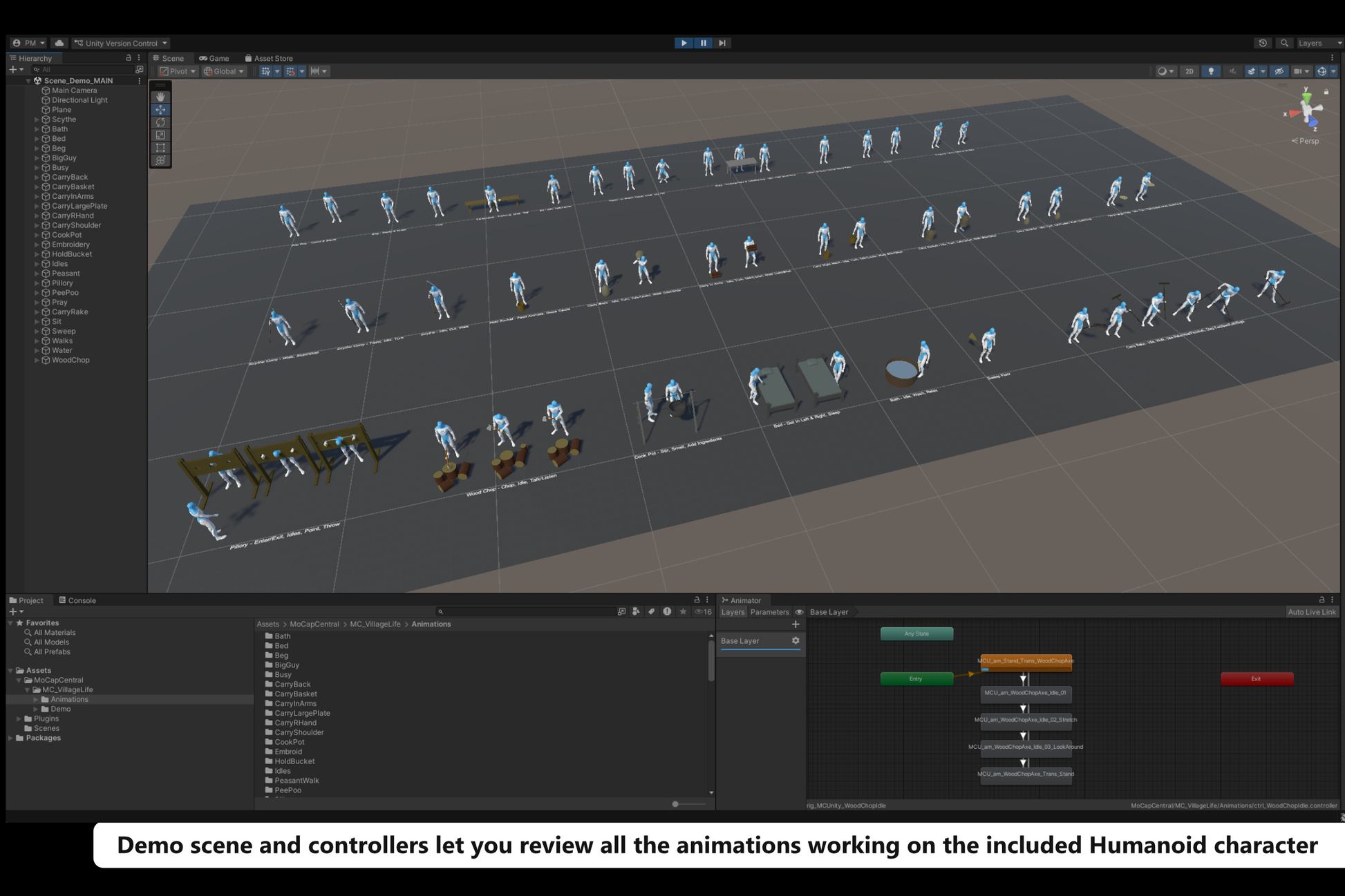 - Includes demo scene and animation controllers