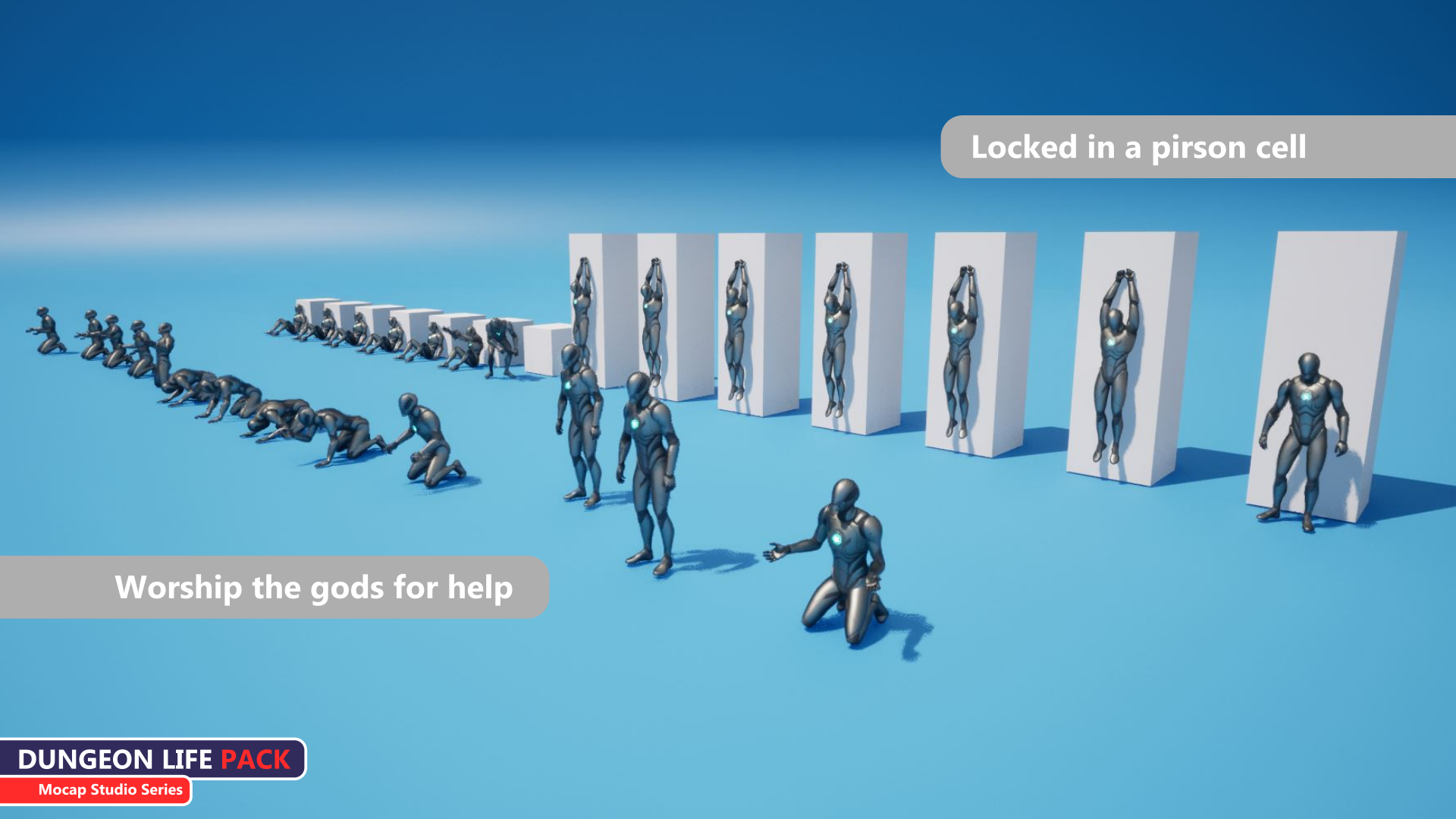 Ambient Dungeon Life & Captives: Make your world feel alive with animations for guards holding a Torch, captives Hanging by their Wrists, characters Worshipping at an altar, and a variety of sitting, standing, and general ambient behaviors.