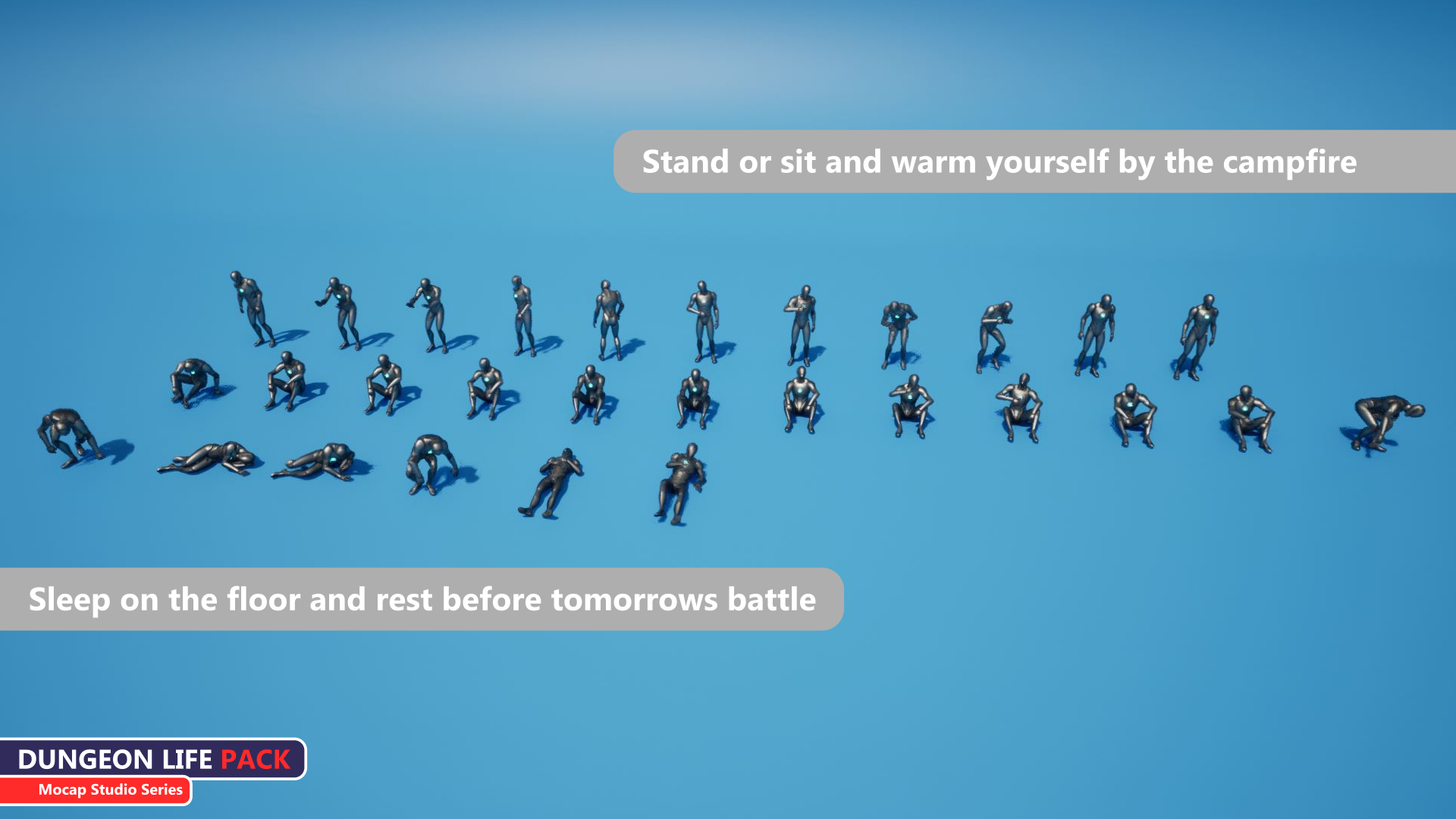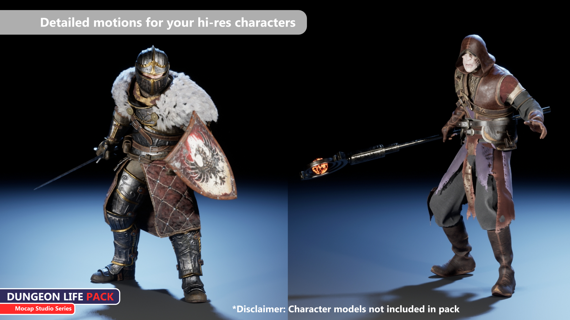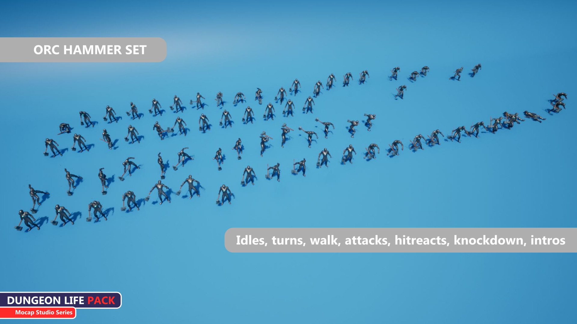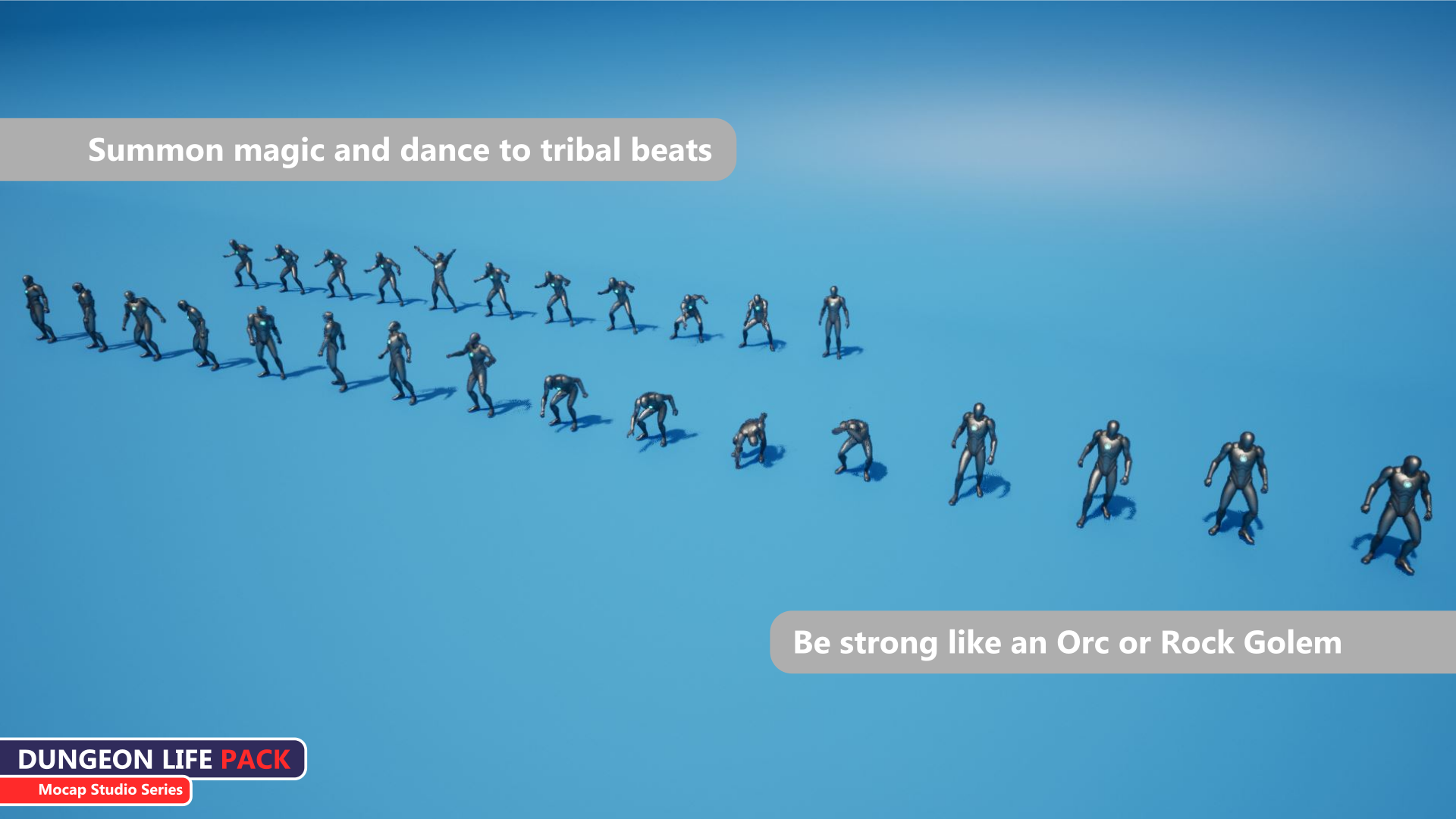 Populate the darkest corners of your fantasy world with the Dungeon Life pack from our Mocap Studio Series. This collection is essential for any RPG, action-adventure, or fantasy game, providing a massive range of animations to bring your player character, allies, and enemies to life.